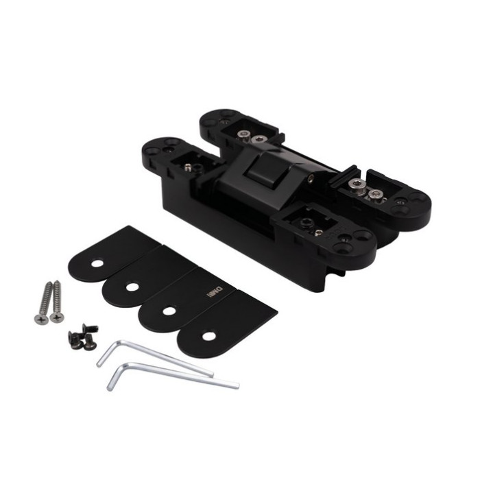 Скрытая дверная петля DMJ 340 SBK в черном матовом цвете из нержавеющей стали для нефальцованных деревянных, стальных и алюминиевых дверей