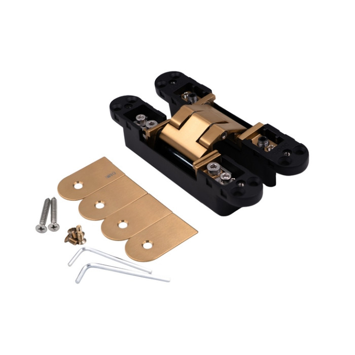 Скрытая дверная петля DMJ 340 SGS матовая латунь из нержавеющей стали для нефальцованных деревянных, стальных и алюминиевых дверей