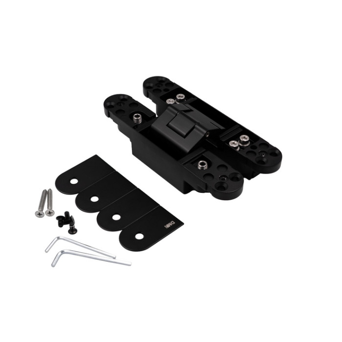 Скрытая дверная петля DMJ 340 ZBK в цвете черный матовый для нефальцованных деревянных, стальных и алюминиевых дверей