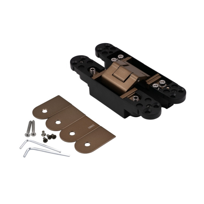 Скрытая дверная петля DMJ 340 ZBR в цвете темная бронза для нефальцованных деревянных, стальных и алюминиевых дверей